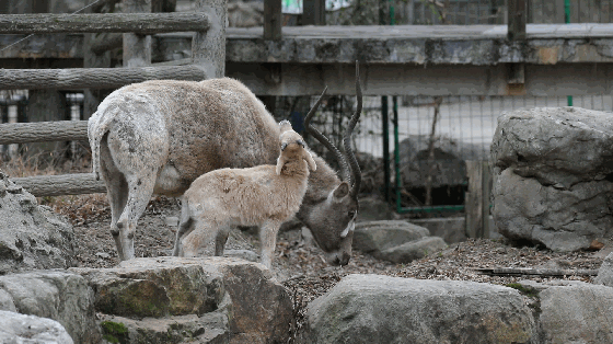 饲养员还为羚妈妈添加了高能量饲料,保证足够的热量和奶水来喂养小崽。心细的妈妈十分会照顾孩子,天气暖和的时候会把小崽带到室外晒太阳。