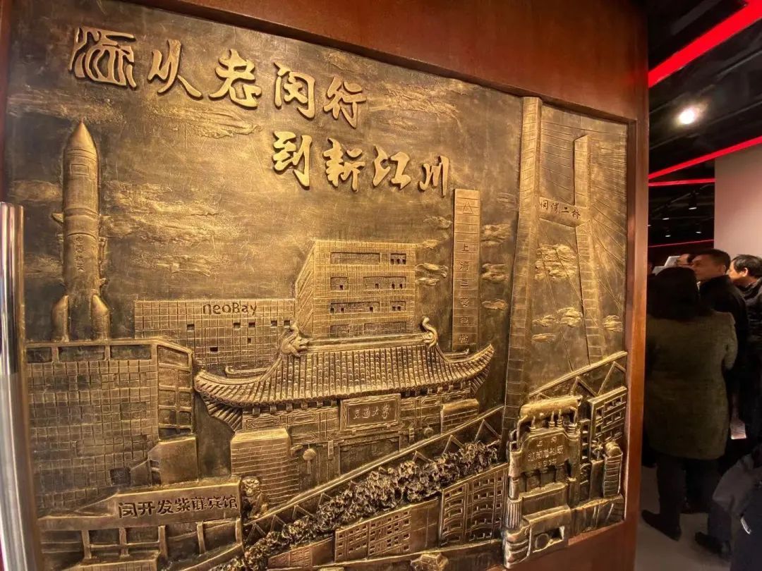 记者看到,在大门进门处就有一幅巨大的铜雕,闵行一号路、四大金刚、闵浦二桥、紫藤宾馆、上海交通大学、零号湾、上海三菱电梯等经典地标在上面悉数呈现。