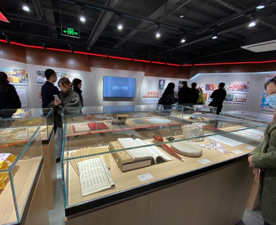 值得一提的是,文化展陈区内通过以展板、实物、影像等多维方式,介绍上海作为中国共产党的诞生地、民主党派的发祥地所走过的统战进程。同时,立足老闵行深厚的工业积淀及历史文化背景,展示了江川从新中国站起来、富起来到强起来的历史跨越。