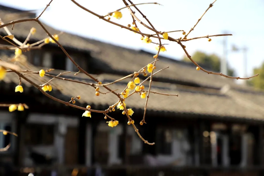 而此时,暗香疏影,蜡梅吐幽,惊艳冬日时光。古镇的蜡梅早花品种正处于盛花期,路边三两枝,最适合伴着花香,慢慢游,细细赏。