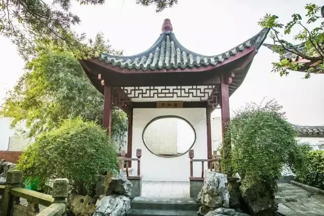 亭林古松园面积虽小,但布局严谨,错落有致。假山上攀着藤萝,曲溪的水清澈见底,亭子的圆窗偷着青青的叶子,曲折的连廊贯穿小圆。