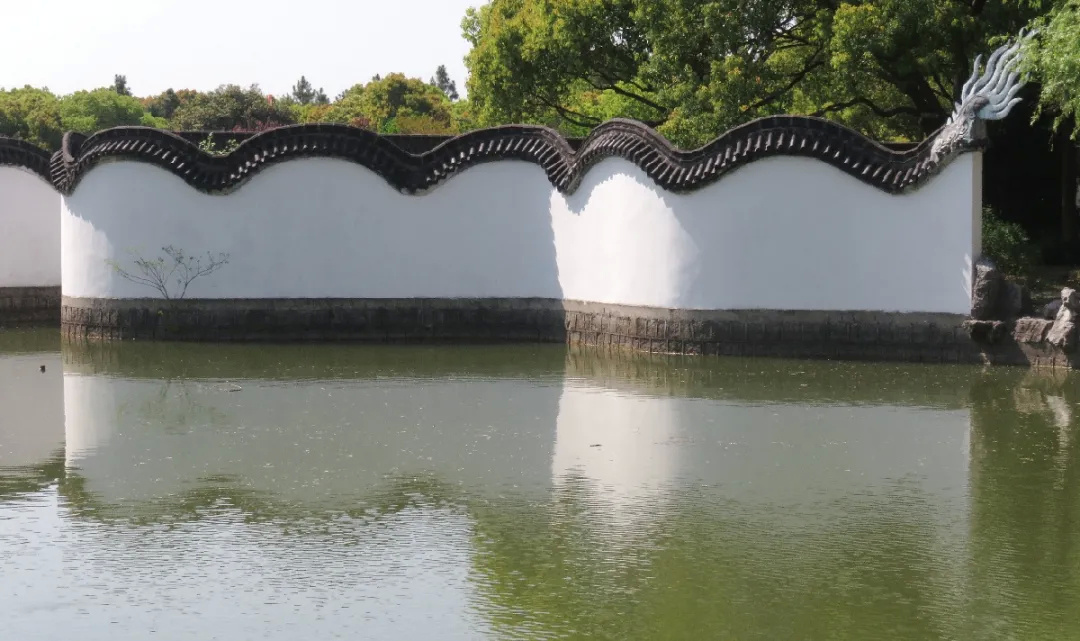 公园还有一大亮点,就是龙墙。龙头塑于园墙之上,瓦片组成龙麟象征龙身,仿佛一条游龙盘桓于高墙,蜿蜒起伏,绝对是汉服小姐姐们的最爱!
