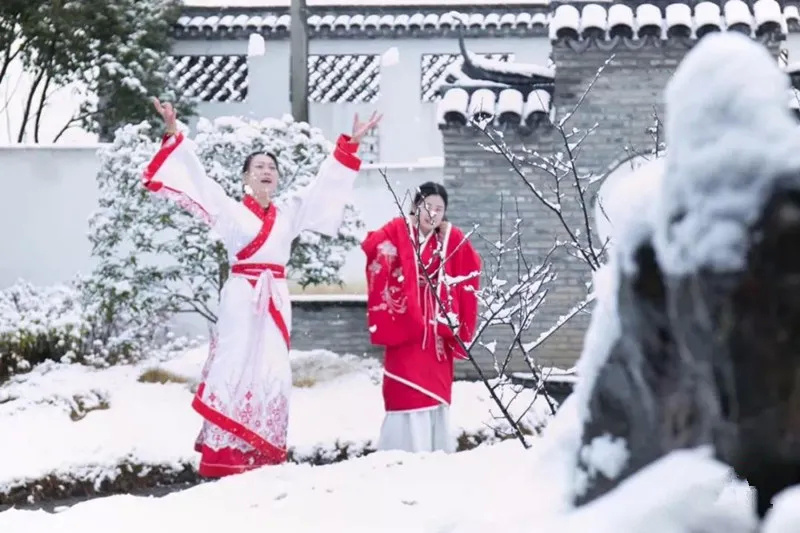 着汉服共贺新春。