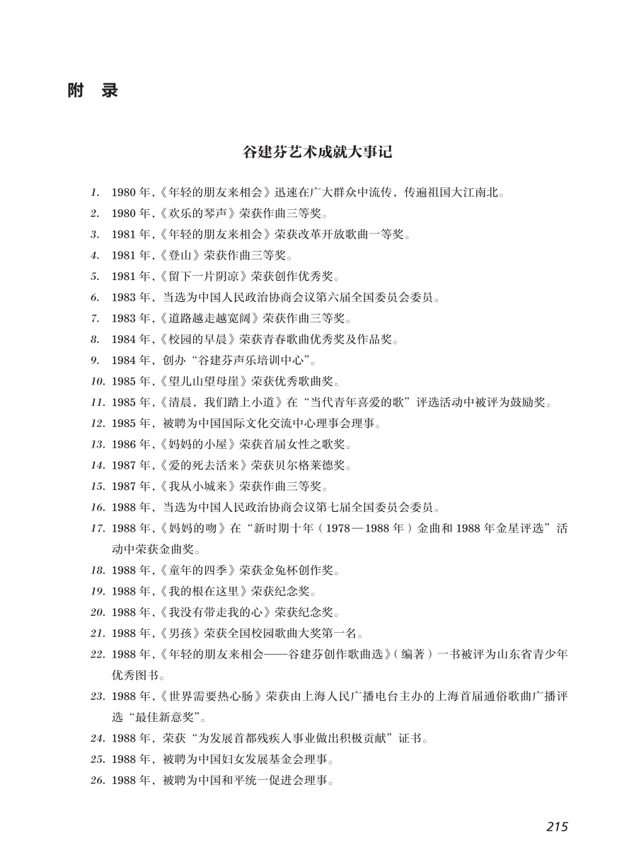 书中清晰地展现了谷建芬音乐创作的发展轨迹,除了不同时代的作品,还收录了她在生活、工作中的珍贵历史照片及艺术成就大事记。