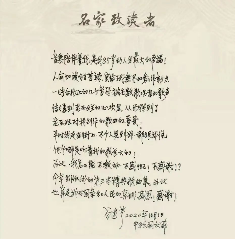 近期,上海音乐出版社将半个世纪以来谷建芬创作的经典歌曲集结出版,以《谷建芬创作歌曲精选》一书,向老艺术家致敬!