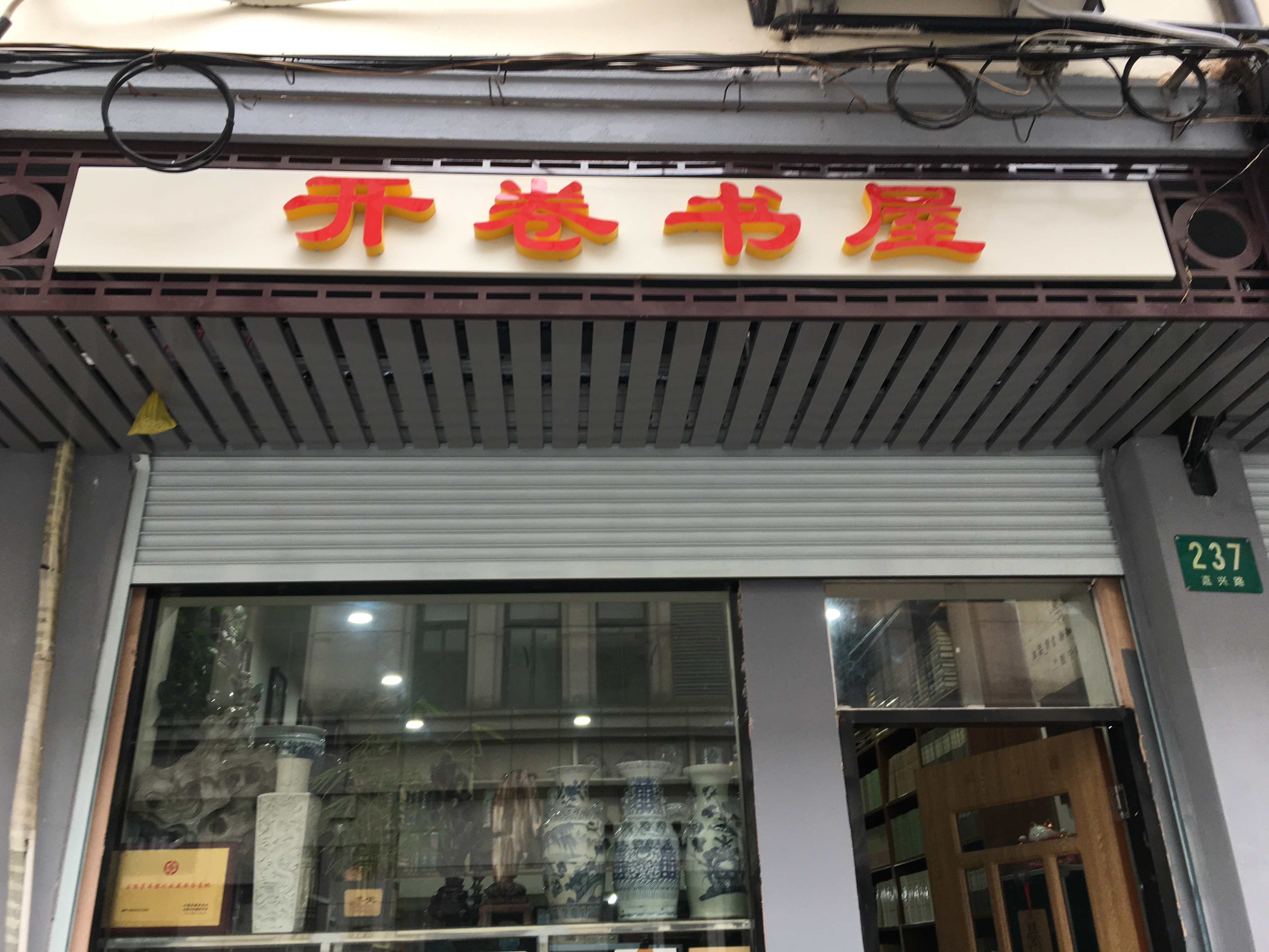 “开卷书屋”位于嘉兴路237号,门面非常有年代感。推门进去,记者发现,虽然书店面积不大,只有二三十平,但布置得井井有条。四面墙的书架上,有一半垒满了文史哲,艺术,养生类的新书,还有一半则是店主多年搜集来的古籍。据了解,樊东伟先生热衷于近现代出版史的研究,所以买了很多书,也萌生了开书店的想法。今年,为了庆祝建党100周年,他还特地整理出了一批上海红色书籍作为镇店之宝。比如由大江书铺出版的有陈望道先生亲笔签名的著作《修辞学发凡》,还有赵超构先生写的《延安一月》。