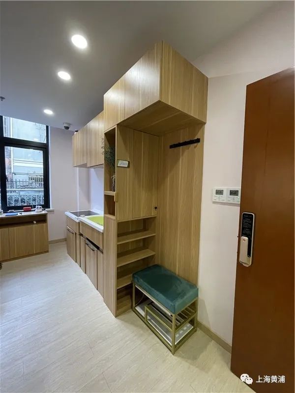 比如,进入中心,第一眼就能看到一套紧凑型玄关组合柜,专为寸土寸金的老房子而设计,能够同时收纳鞋类、伞具、外套、杂物等物品,可移动换鞋凳的底部,还装有能够根据光线明暗自动开启的照明灯。