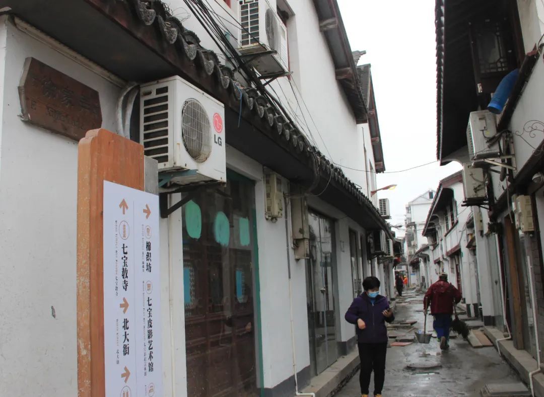 白墙灰瓦,加上古色古香的窗户,在七宝老街里弄走一走,浓浓的古镇气息。据介绍,此次改造还对房屋的修缮和室外总体工程方面进行优化和提升,并配合老街的“青砖白墙”以及现有绿色植物,增添了横沥路杨园入口处的“小品”、徐家弄公厕对面的“小憩”等特色项目。