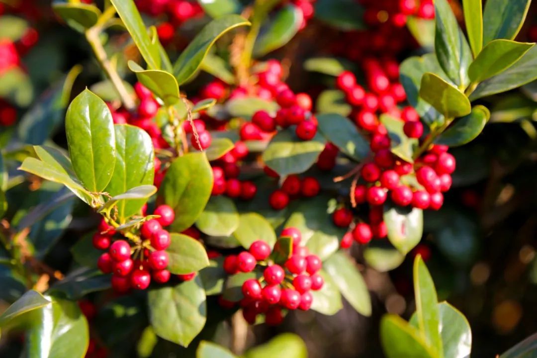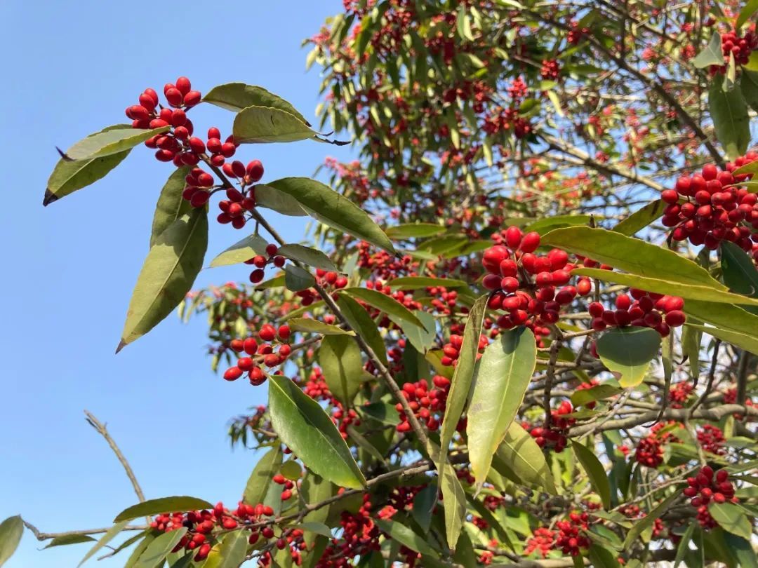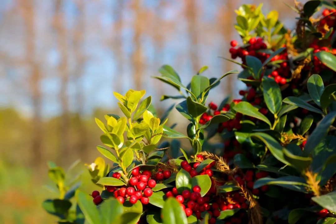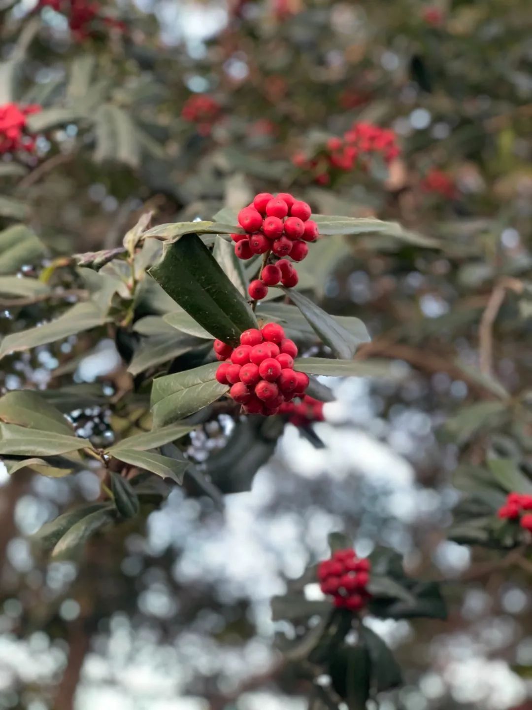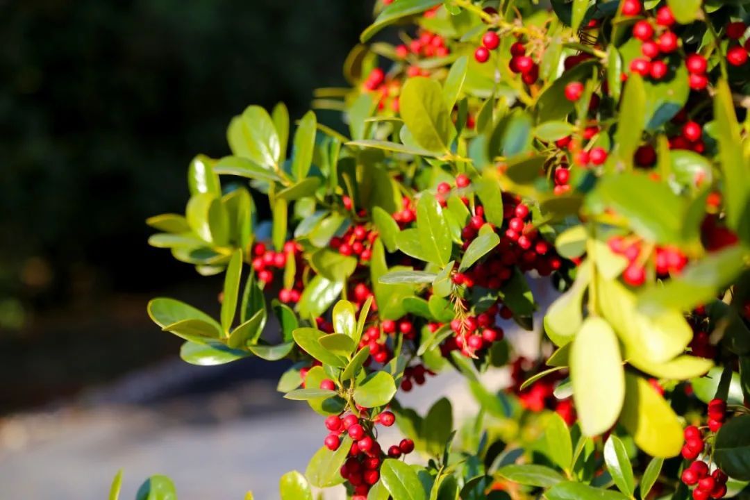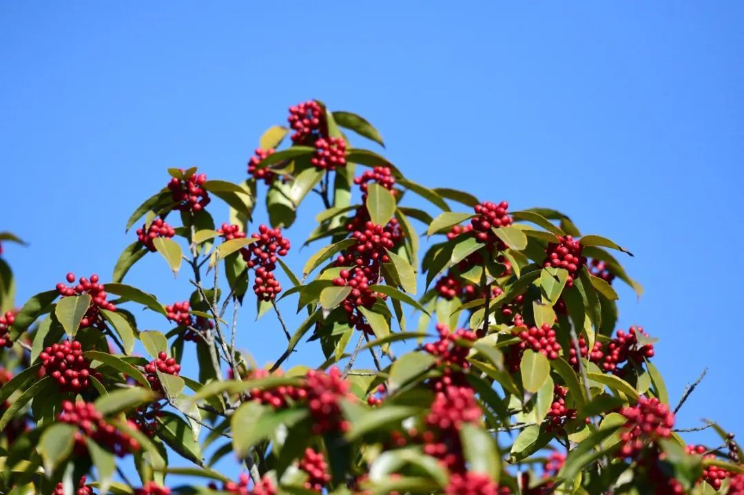 在植物园的冬青树有一颗高达十余米、树龄40多岁的。冬日,树冠缀满了红红的果实,累累的硕果成为红翅绿鸠最爱的美食,保证了鸠儿这段时间可安心的栖息于此。