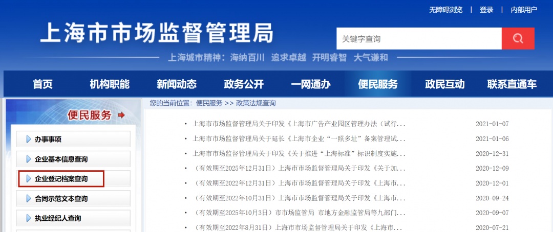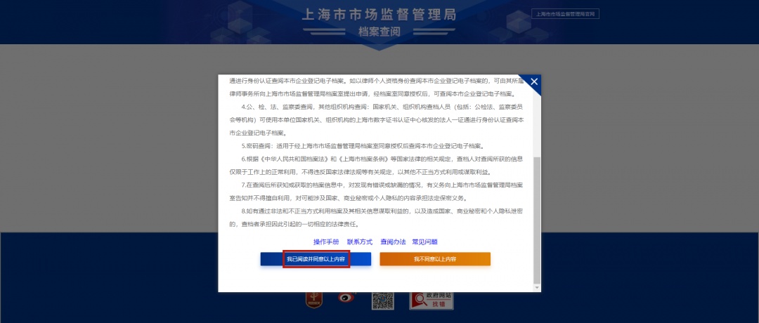 任何上海注册登记的企业都可以从此入口进入查阅本企业自身档案。