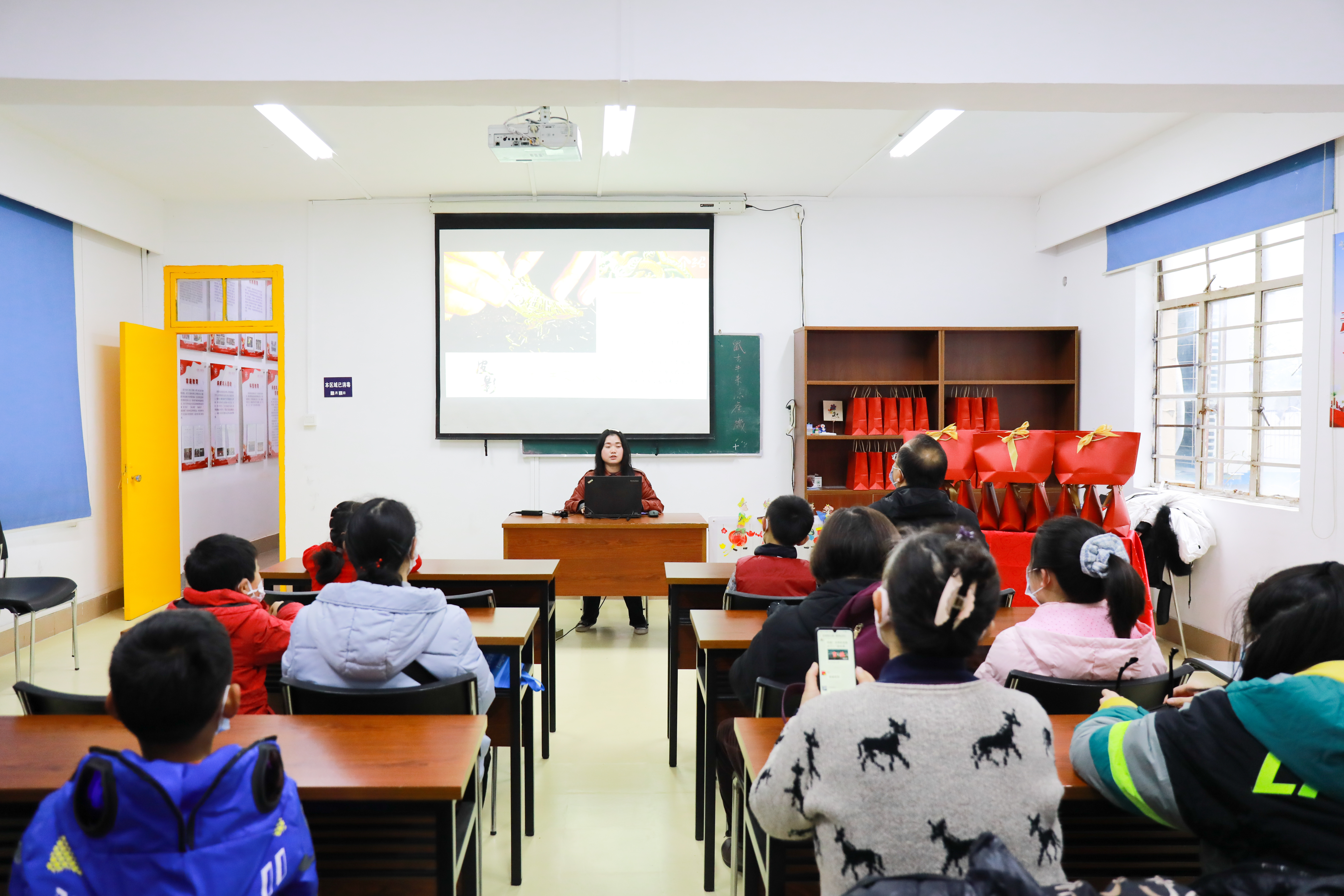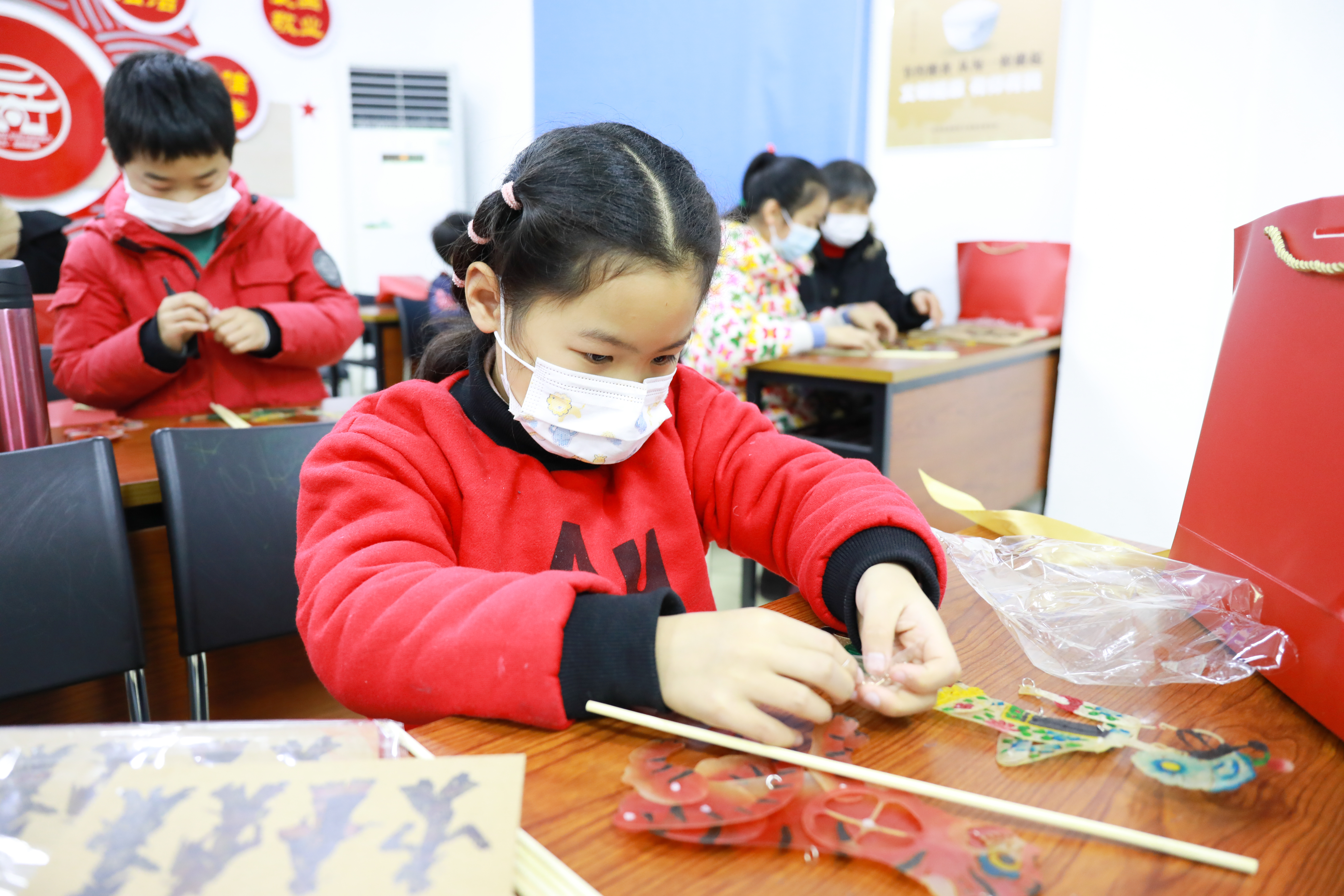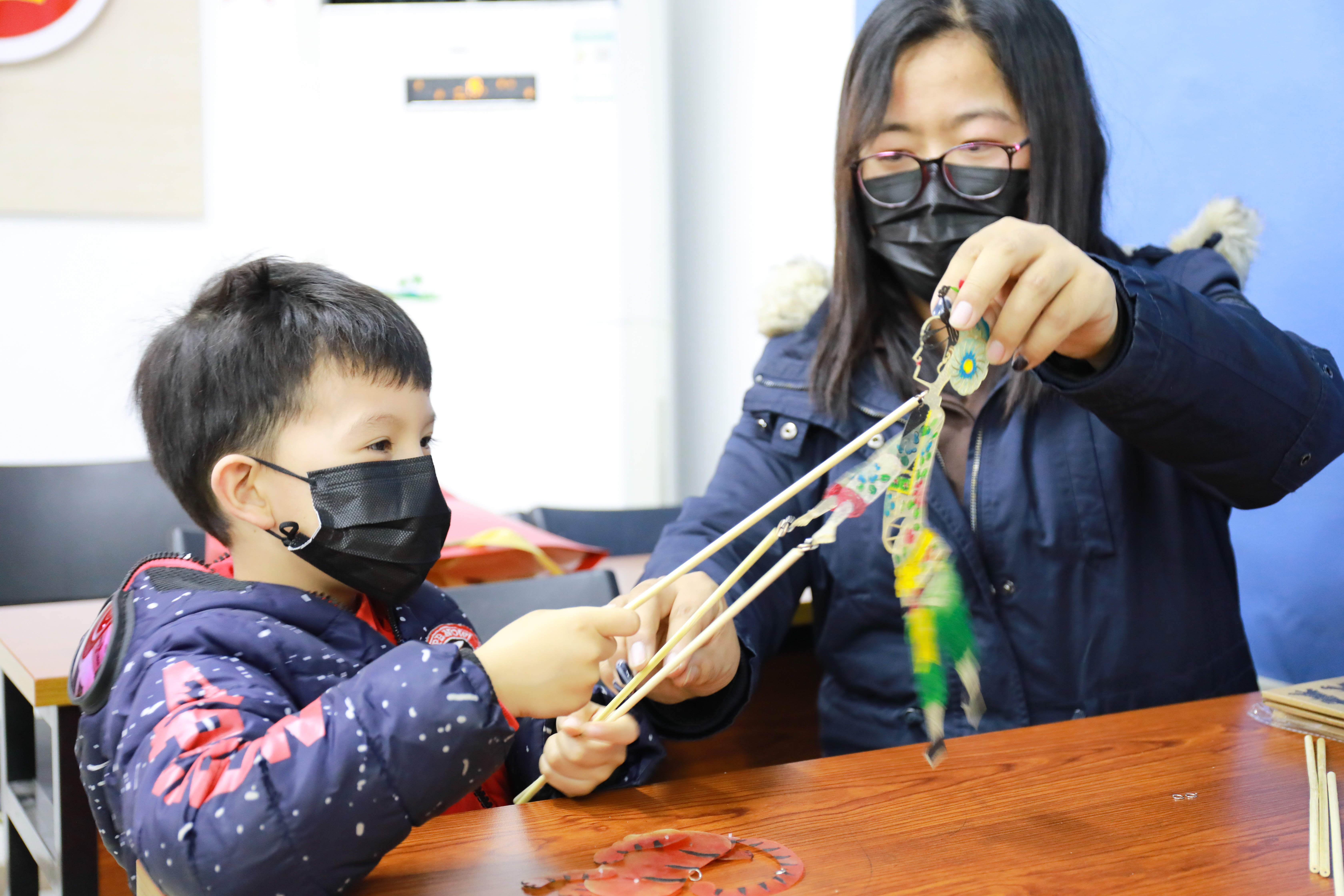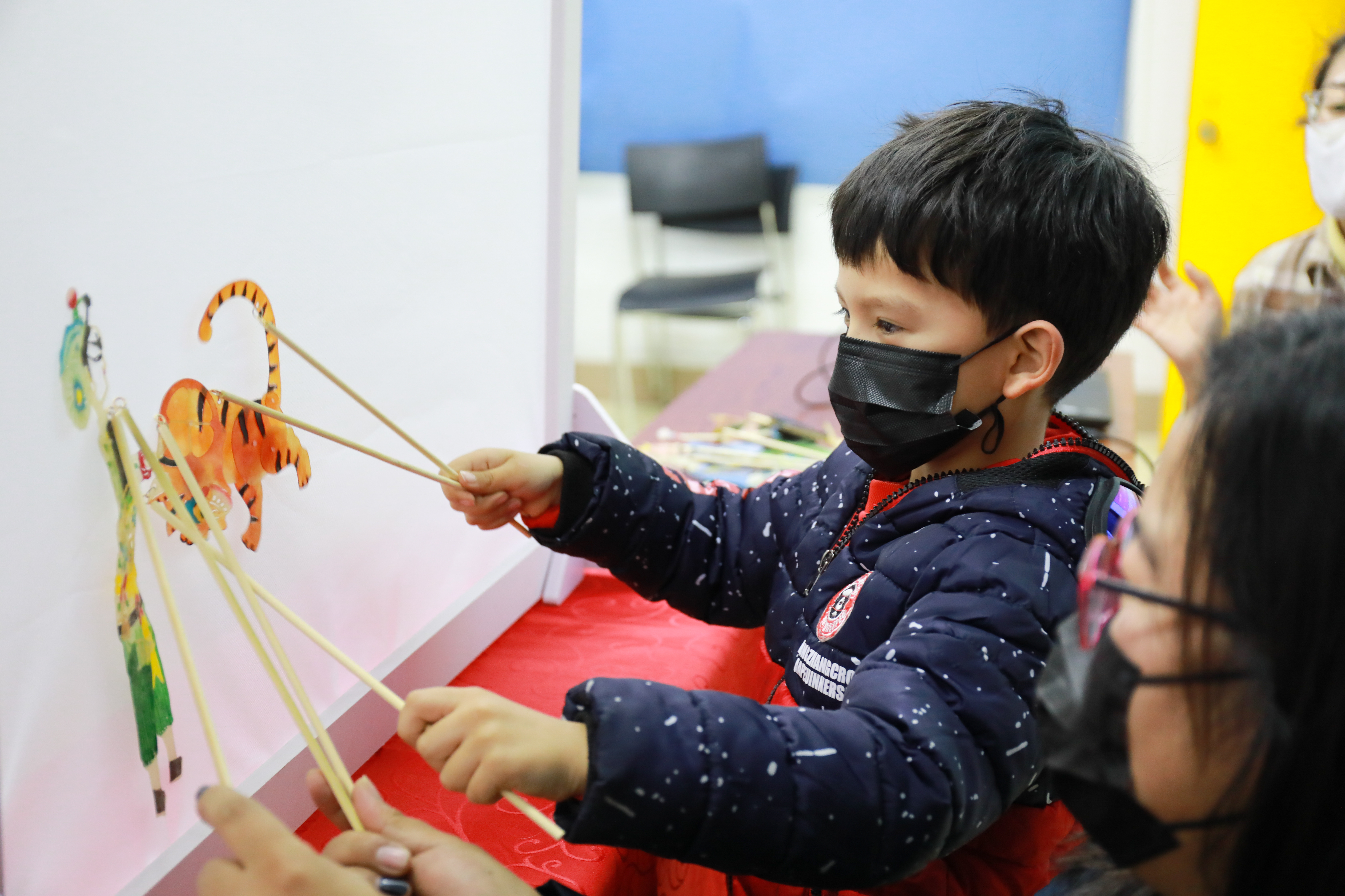 孩子与家长体验组装皮影
