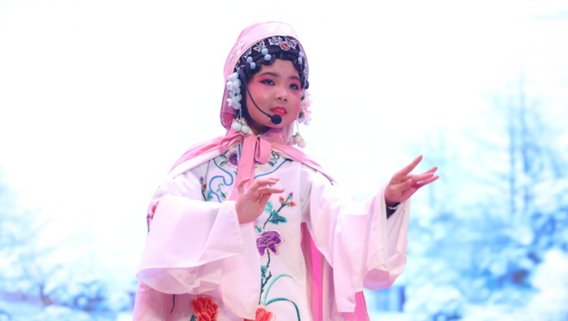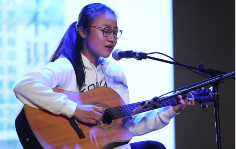 “在成长的记忆中,苏城洁白无瑕的雪景,让自己难以忘怀,用歌声记录下所见,让大家听听‘雪落下的声音’。”表演者肖懿轩以演奏、演唱、表演融为一体的形式表演了这首曲目。