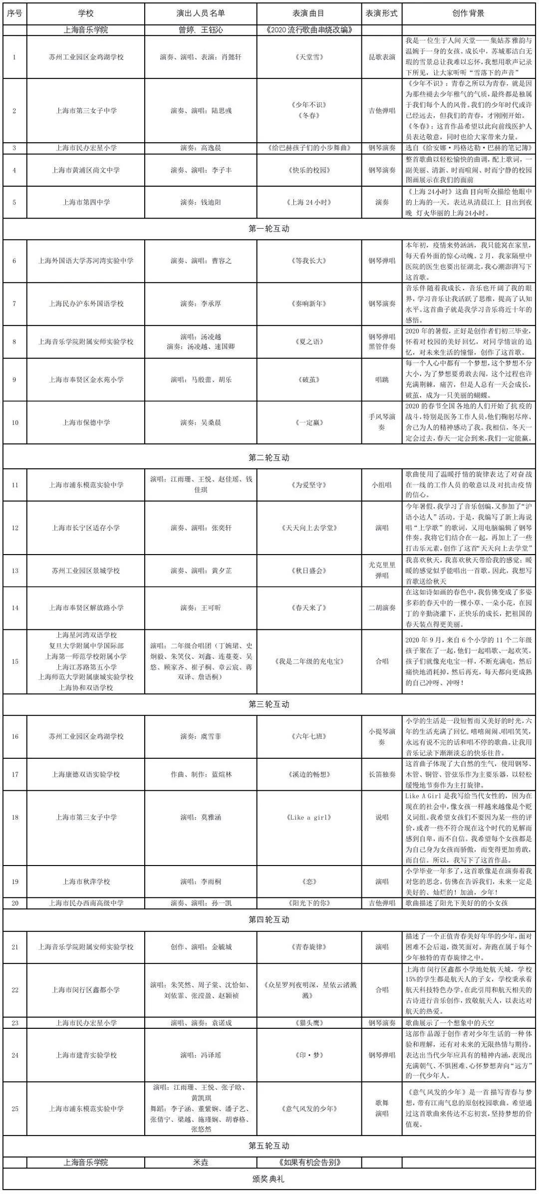 在这场音乐会中,你不仅将观看到孩子们用歌声向抗疫一线的医护人员致敬的独唱曲目、小学生们用歌声表达自己成长过程中的欢乐与苦恼的合唱曲目,甚至还能听到把古诗词创编成歌曲、独自填词谱曲的沪语歌曲以及改编自化学元素周期表的RAP曲目。除此之外,还有同学们带来的丰富多彩的乐器演奏。虽然隔着屏幕,但小作曲家们的歌声也一定能感染到你,让你的假期也充满元气。