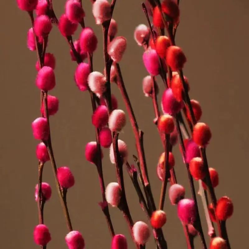可以长久摆放的银芽柳和迎客豆是年宵花的常用花材,每一颗果实里仿佛都藏着一个愿望:万事如意,平安顺遂。