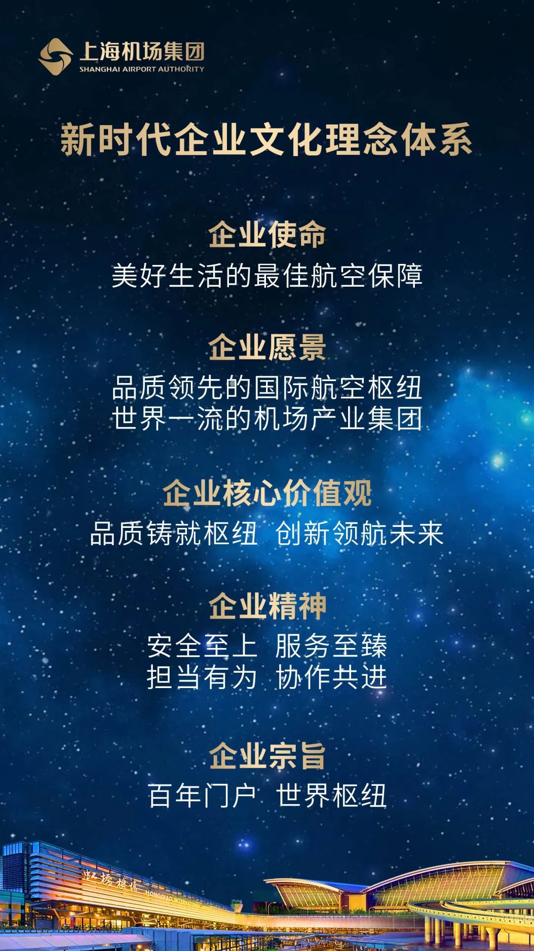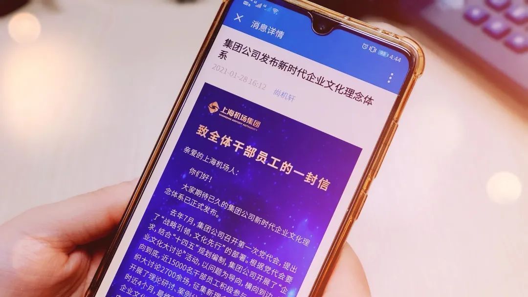 在发布仪式的同时,秦云同志借助微信企业号和企业邮箱向全体干部员工发送了一封信,阐释了新时代企业文化理念的基本内涵,激励大家在“两个一百年”历史交汇期,以及庆祝建党一百周年和虹桥机场建场一百周年之际,携手同行,踔厉奋发,以担当再奏新曲,以创新再著华章。