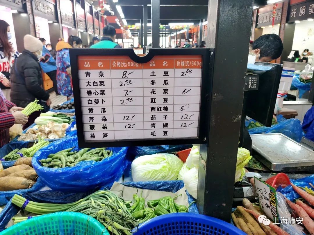 不仅如此,据静宝了解,静安区商务委根据市、区保供稳价工作要求,正在全区进一步开展平价菜优惠活动,从2月上旬至2月底,全区每个标准化菜市场每天将设置2个平价菜专柜销售平价菜(以绿叶菜为主),售价低于市场销售价的20%-30%。区商务委将给予每个市场每天400元补贴(每个摊位200元/天)。