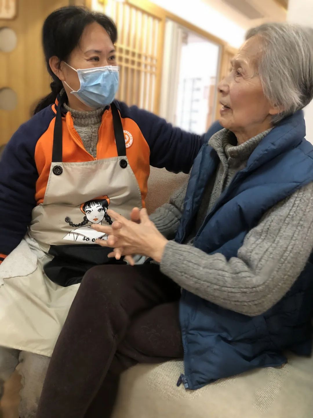 2020年5月,张瑛再次从老家来到上海求职,有着失智老年人照护职业技能证书的她来到刚刚营业的悦馨第一长者照护之家应聘,丰富的从业经历和专业的实操让张瑛顺利入职。九个月来,她感受到这里大家庭一样的氛围,她说,留下她的不仅是待遇,还有感情。