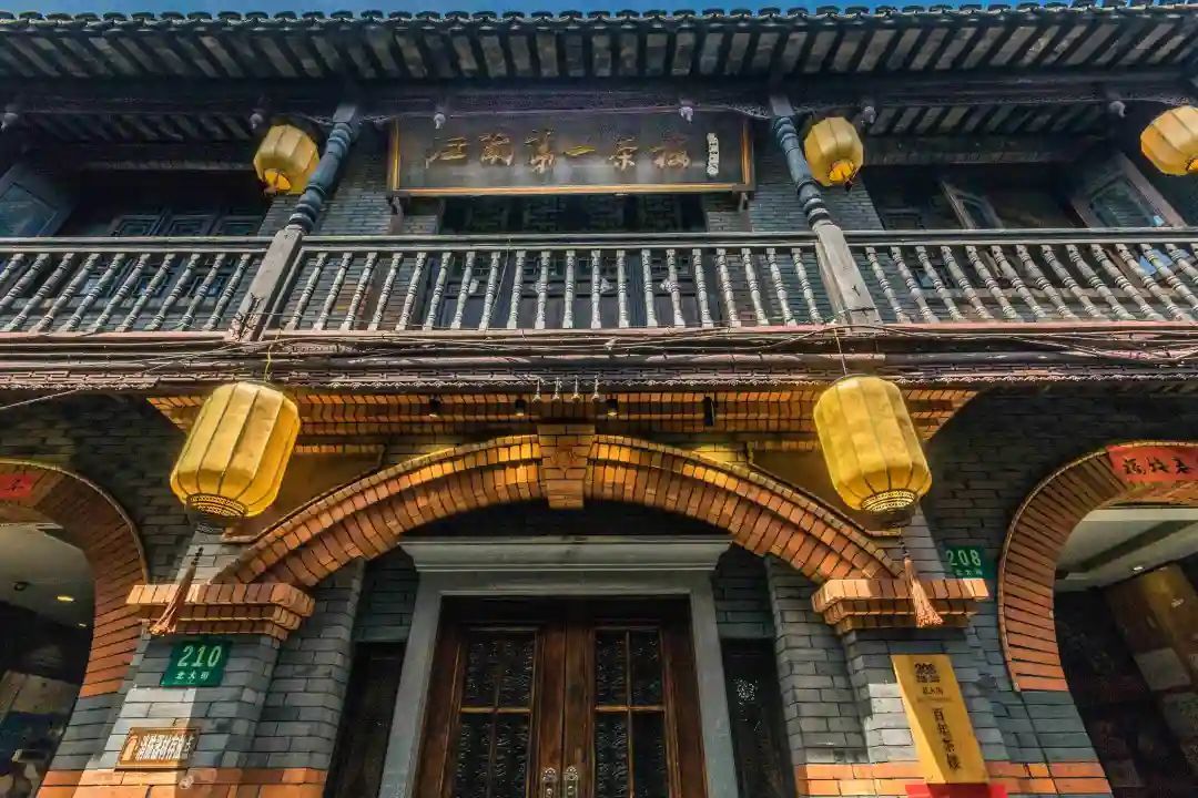 朱家角俱乐部茶楼建于清代末年,为一家百年老店,有“江南第一茶楼”之誉。茶楼内共有十多张茶桌,头顶的复古吊扇、茶馆一角的评弹舞台、每桌标配的竹壳热水瓶、玻璃杯和摆放着水果、瓜子、点心的木质茶点盒,都还原了老上海人对茶馆的记忆。