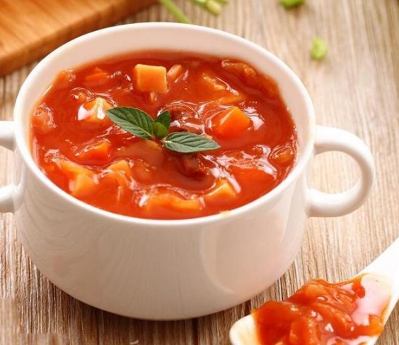 ❻ 出锅前,加番茄沙司、盐,调味即成。