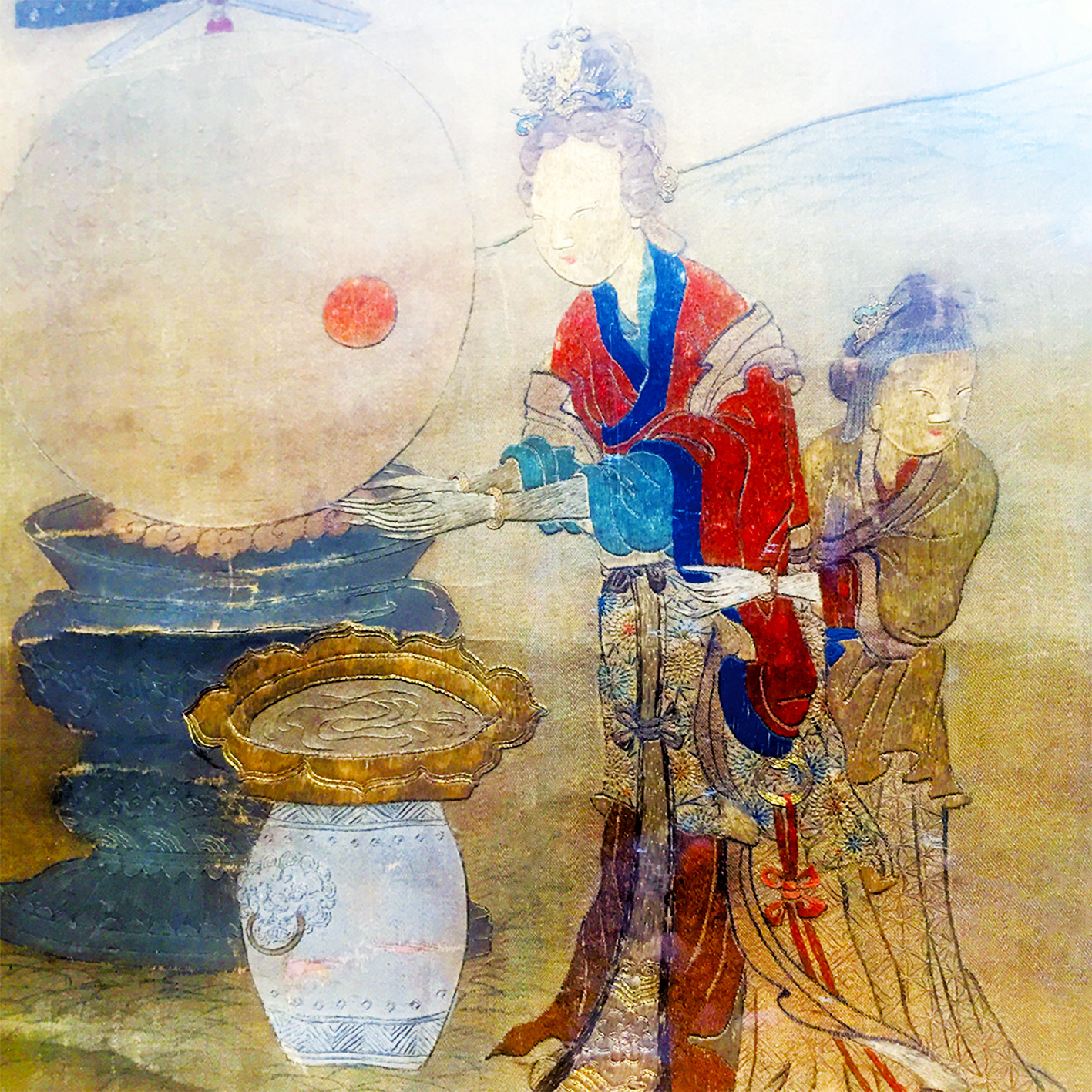 现今上海市黄浦区人民路环内,大境阁附近,有条丁字马路“露香园路”和“万竹街”,它的周边有青莲街、东青莲街、阜春街等几条小路,此方圆之中便是露香园的旧址。两宋期间,文人雅士都好自然山水园,明朝继承了唐宋的余风,且形成了自己独特风格的园林,这露香园便是明代“上海三大名园”之一,明·朱察卿曾在《露香园记》中用“盘纡澶漫,擅一邑之胜”来形容园中盛景,可见当时的生活状态及精神审美。园主顾名世是明嘉靖三十八年(1559年)进士,官尚宝司丞,晚年居上海颐养天年,在扩建私家园林时,挖掘出一块刻有元代书画大家赵孟頫篆书的“露香池”石碑,遂将自己原有的“万竹山居”改名为“露香园”。顾名世“性好文艺”,见多识广,在他的影响和倡导下,顾氏家族女眷也酷爱艺术,工丹青书法,尤其擅长刺绣。“故世称其家刺绣为露香园顾绣,或顾氏露香园绣,或简称为露香园绣”(徐蔚南《顾绣考》第一页记载)《红楼梦》中有一记,贾元春得到一绣佛,称道:顾绣,女中神针也。