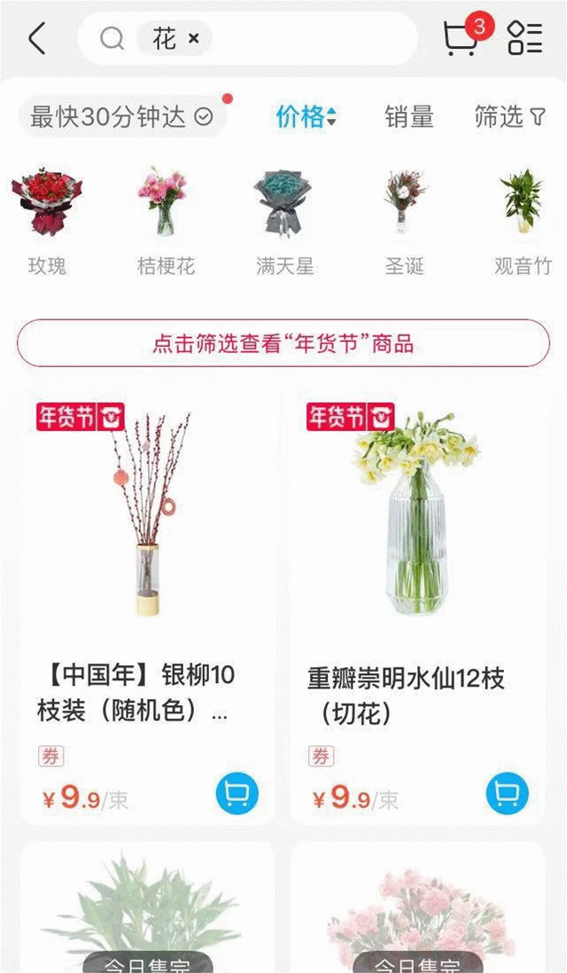 添置新年的“烊头”:鲜花