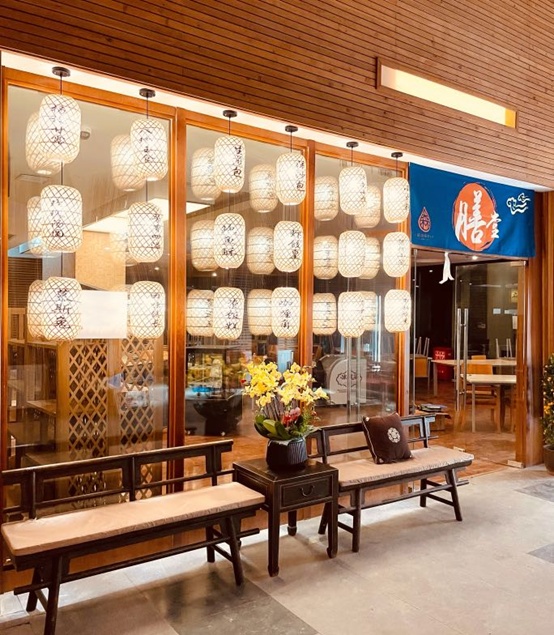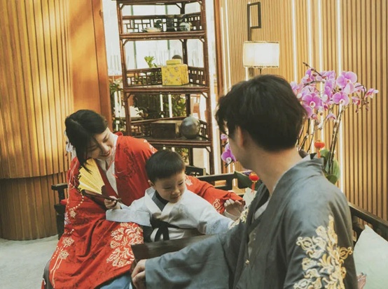 还有那藏于岛屿深处的古风餐厅,也是全岛唯一的中式膳堂。中式灯笼、原木长椅、棉布挑帘、小几清供……映入眼中的景致,满满都透着传统文化的流韵。换上温泉馆提供的汉服,随手一拍,就是古风大片。