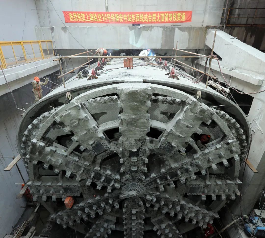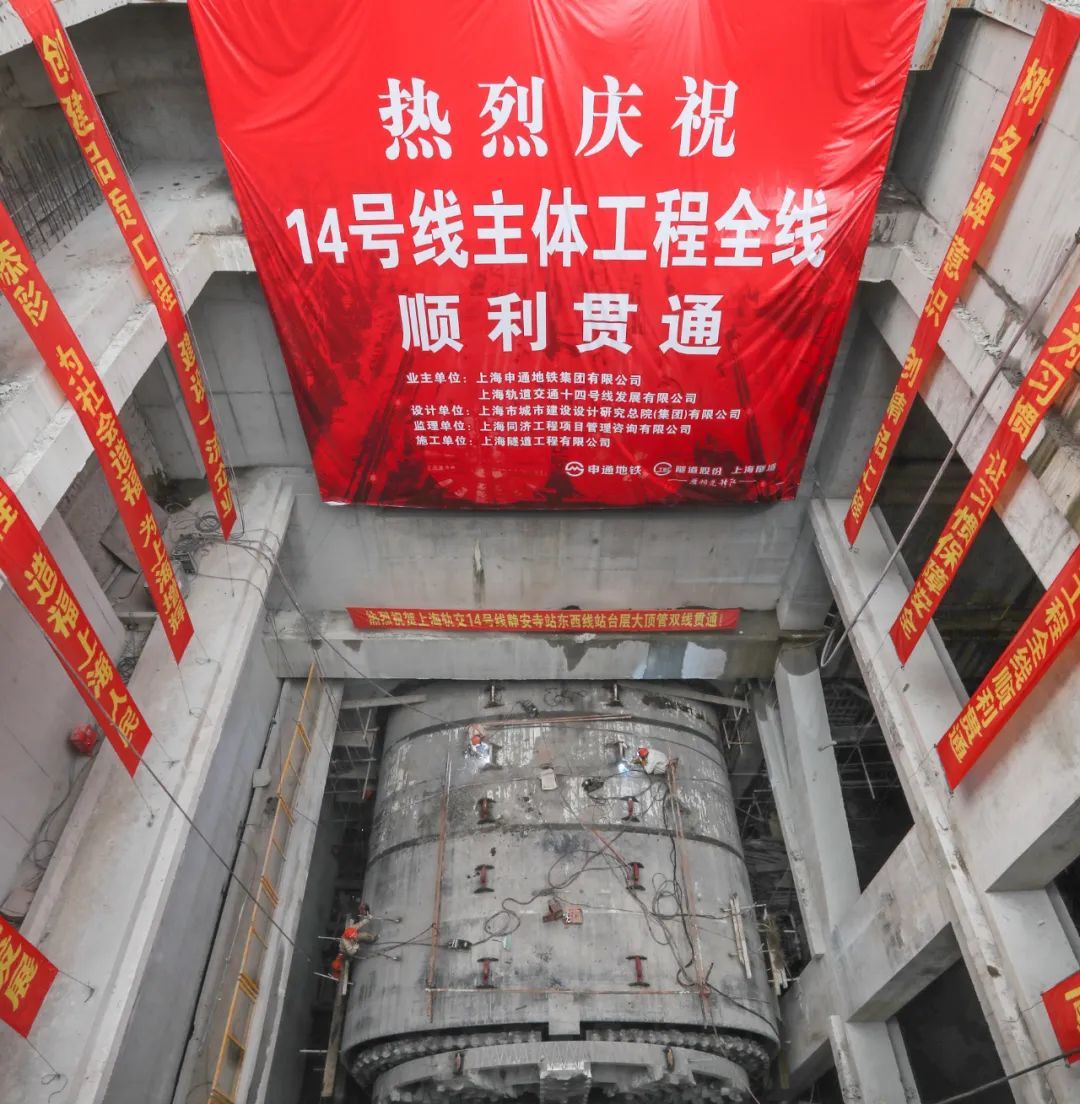 申通地铁集团说,轨交14号线静安寺站站台层上行线顶管顺利完成接收,这标志着14号线主体工程全线顺利贯通,为后续全线轨道铺设及列车上线调试创造了条件。14号线正线全长38.514公里,共设地下车站31座。建设中,创造了最深车站、最复杂枢纽站等多项之“最”。详见↓