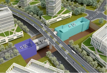 车站主体沿线路方向分A、B、C三个区域,其中A区、C区均采用明挖顺作法实施,B区为过延安路段,采用三根大断面顶管法实施。