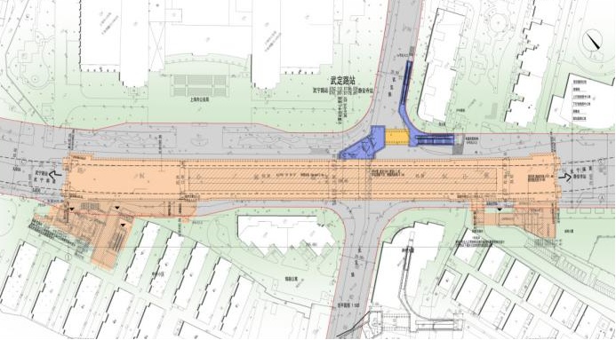 武定路站1号出入口,首次运用U-BIT束合管幕工法,通过断面预应力施加从而提高管幕的整体性,具有形成的断面尺寸更大,断面形式更灵活,开挖阶段无支撑等优点,国内亦属首例。