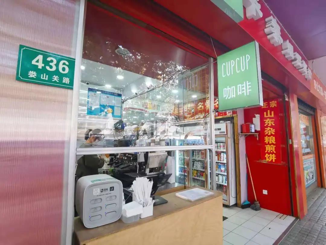 这是一家“镶嵌”在烟酒便利店里的迷你咖啡铺,与一旁的煎饼摊、包子铺一道,承包了附近上班族每天的早餐。