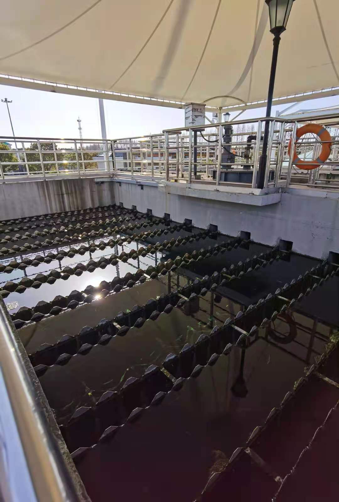 设施单位简介:虹桥污水处理厂是一座半地下式污水处理厂,设计污水处理规模为20万立方米/日,另外设计有5万立方米调蓄池,服务面积约67平方千米,服务人口约50~55万人。污水处理系统采用改良型多级A/A/O和混凝沉淀+反硝化滤池组合工艺,污泥处理系统采用离心浓缩+低温真空干化脱水工艺,出水执行《城镇污水处理厂污染物排放标准》(GB 18918—2002)一级A标准,其中氨氮、总磷达到地表水Ⅳ类水标准。