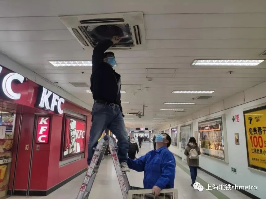 车站还加强了维保人员对车站风机通风口的清洁除灰,既能保持干净卫生,又能大大降低细菌病毒吸附在通风系统内的概率,保持良好通风,为乘客营造清新、舒适的乘车氛围。