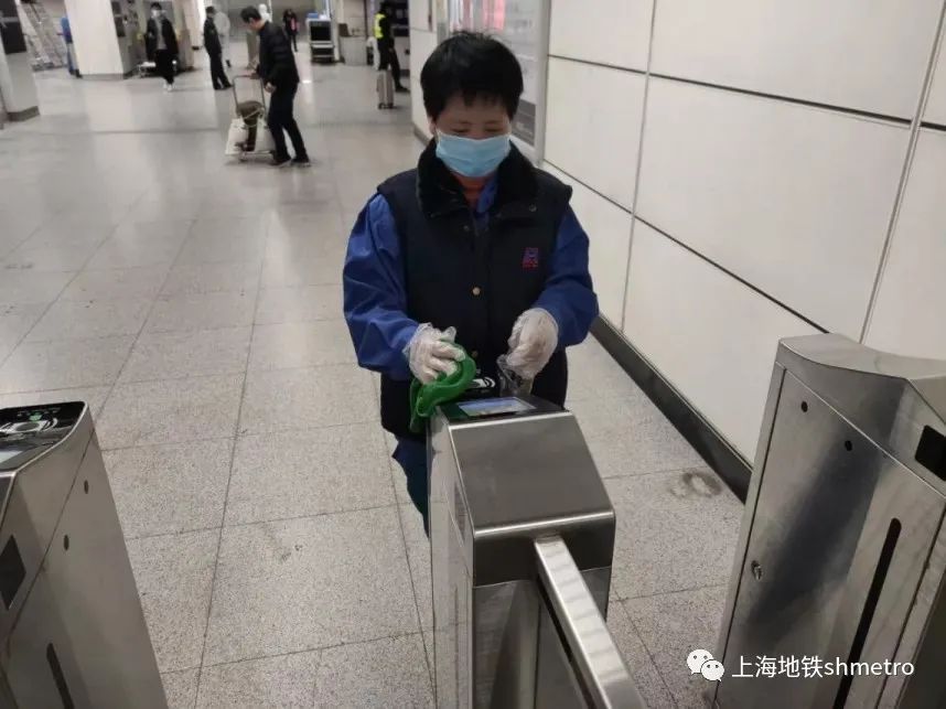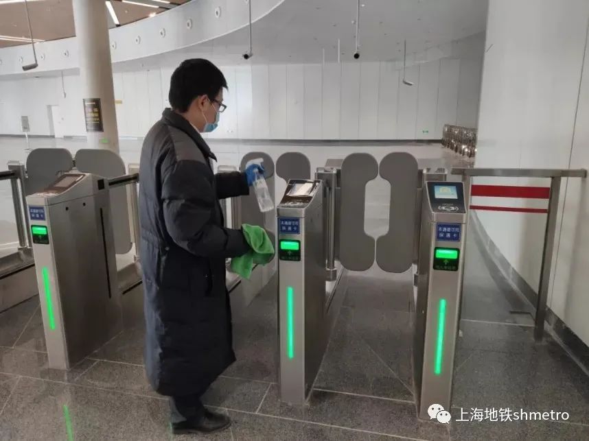 对于每日接触和使用率最高的闸机和自助售票机,车站落实专人定时消毒清洁,票务维修人员和保洁人员负责进站闸机,服务中心工作人员负责出站闸机,防疫专用绿色布也有效消除交叉感染的可能性。