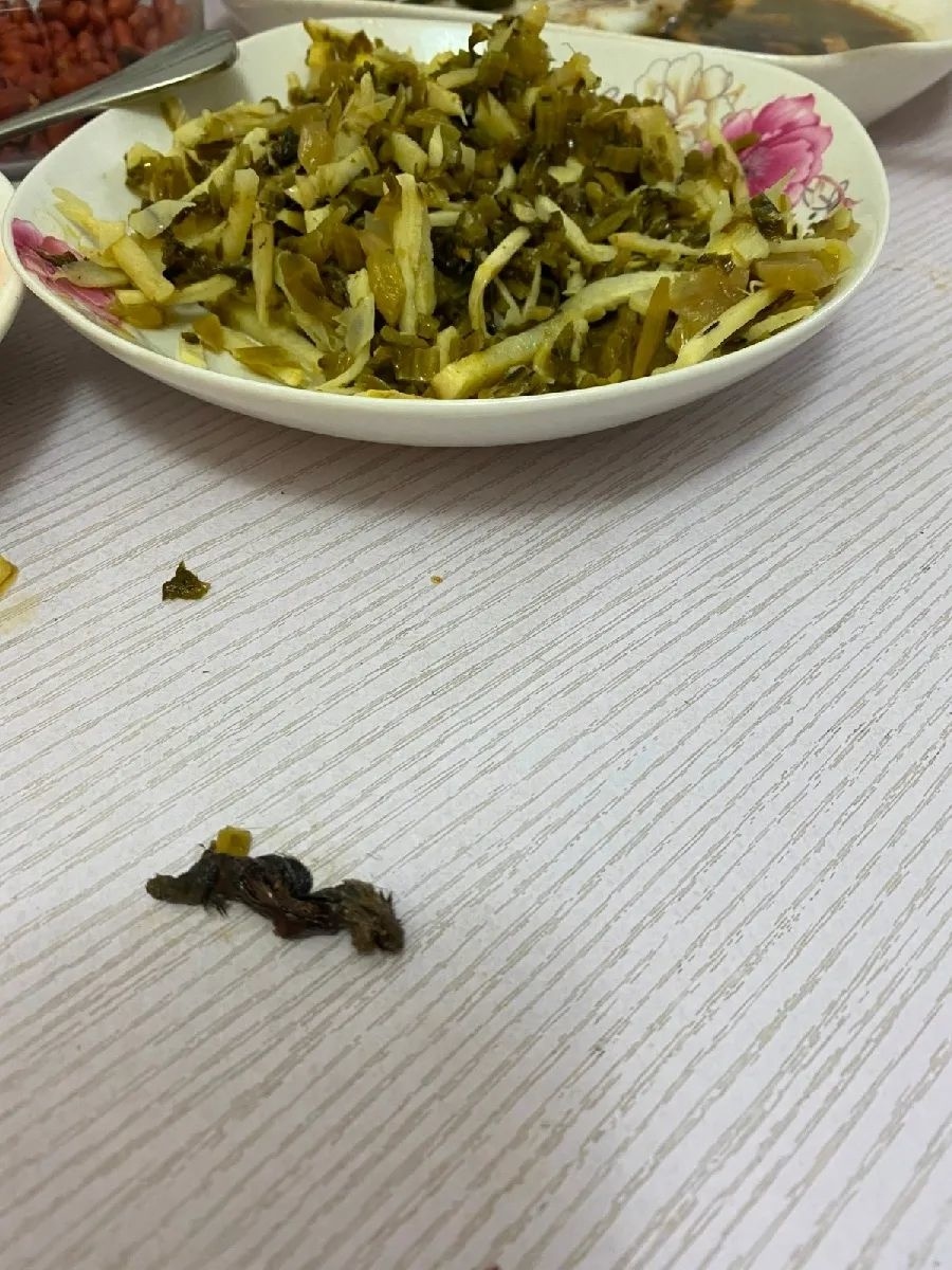 幸亏这次是我掌勺,眼疾手快之下发现了这只小老鼠。如果换成家里老人说不定就当成雪菜一口吃掉了。