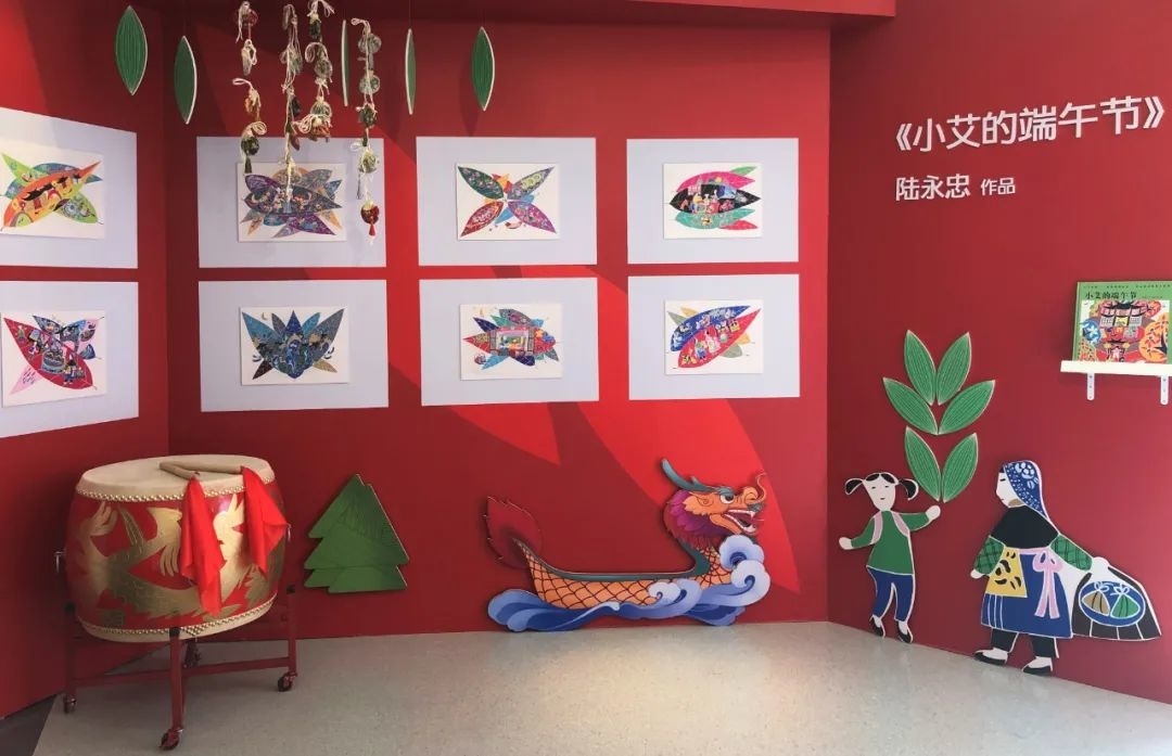 现场展出的“大美中国·遇见童年——金山农民画绘本原画展”就是基于这套绘本,通过金山农民画展现大金山和小金山的传说、吕巷“白龙米糕”的神话、金山农民画的传承、端午节习俗等画面,展现了金山的人文历史和民间传说。