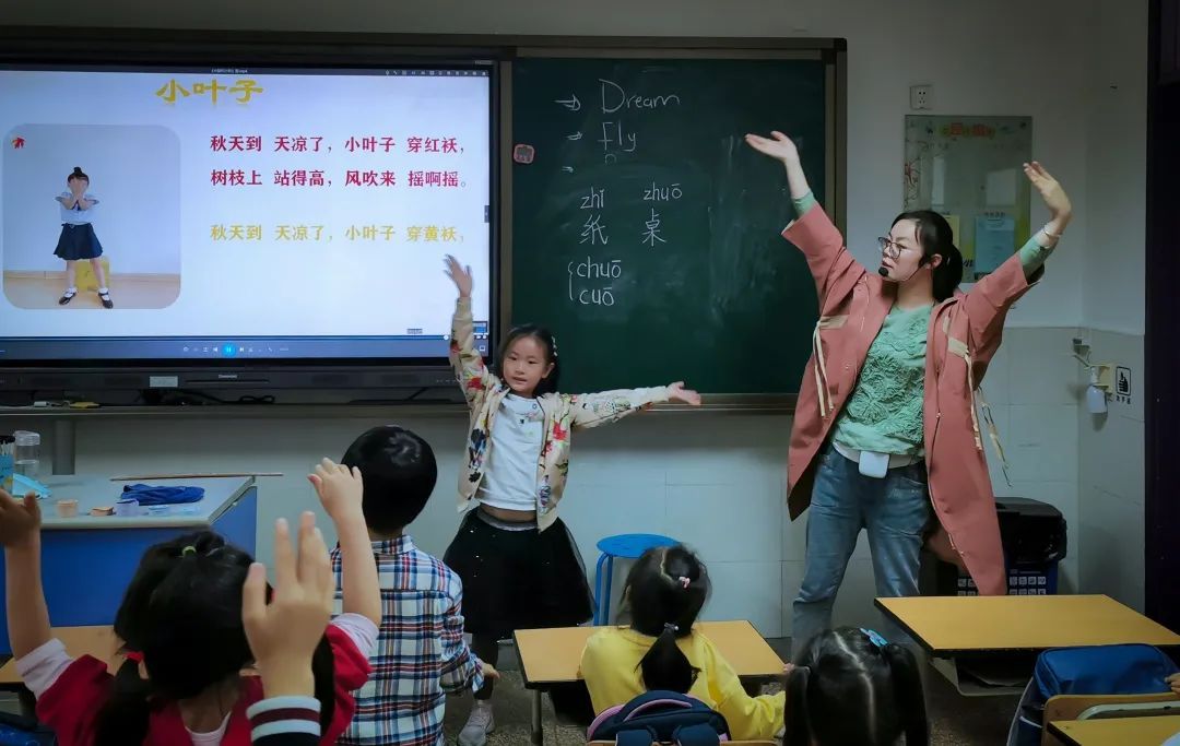 充满激情的老师带领着同学们