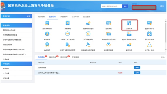 在跳出页面中选择[开具无欠税证明],点击进入办理页面