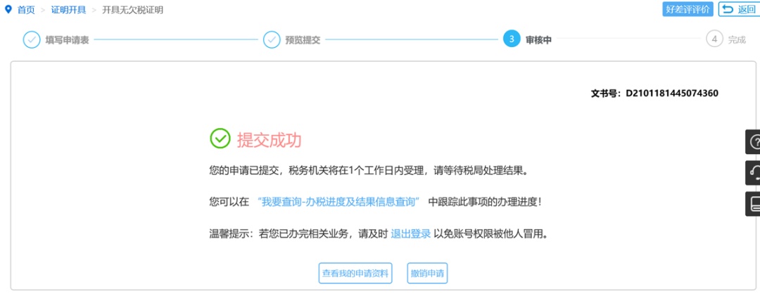 友情提示:若本年度未做年度汇算清缴,同样属于有未申报记录,则无法开具无欠税证明。