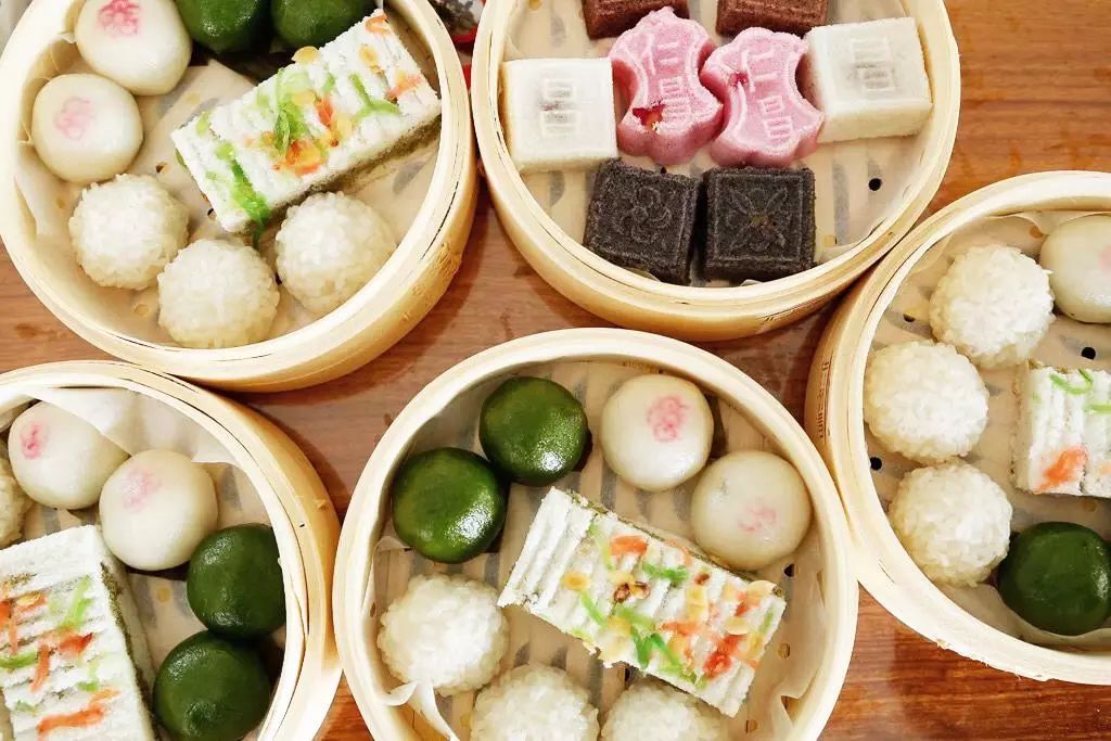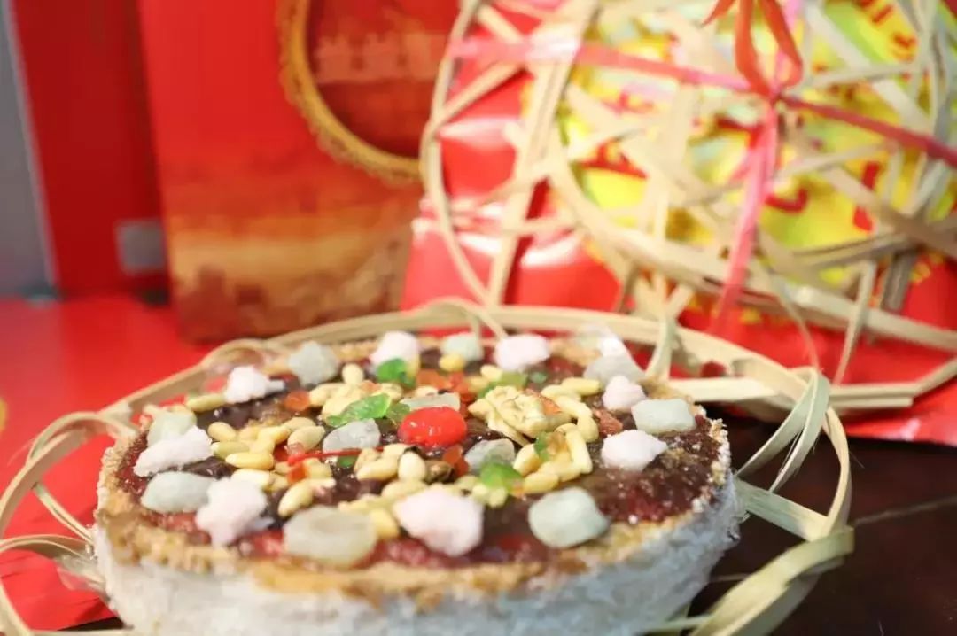 盘龙心始于清朝时期,已有三百多年历史,是吴江盛泽独有的传统糕点。其味道层次丰富,表面看上去色彩也非常丰富,红色的玫瑰酱、紫色的豆沙、棕色的红糖、白色的冬瓜条……远远看上去还真像一条色彩斑斓的蟠龙。