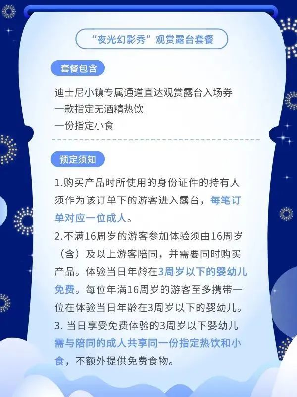 1. 本产品不含乐园门票,进入观赏区域无需进入上海迪士尼乐园。