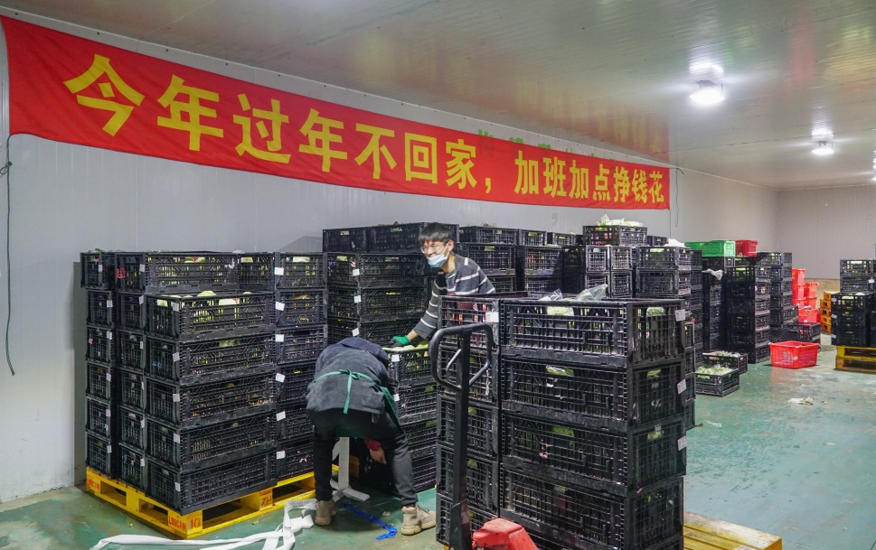 “保质保量保供应,防控疫情保民生”“今年春节不回家,加班加点挣钱花”,在上海丰伟果蔬专业合作社的包装车间里,两条横幅格外醒目。工人们正将当天采收的蔬菜进行分装打包,现场忙碌而有序。负责人告诉记者,今年春节,员工一个都不少,全都留在基地,加班加点保障蔬菜生产和供应。据介绍,合作社主要供应永辉和沃尔玛等大型超市。300亩基地里全部种植了上海市民喜爱的绿叶菜,包括青菜、鸡毛菜、茼蒿、草头等品种。其中青菜在田面积50亩,鸡毛菜20亩。为保证蔬菜的品质和产量,该合作社有不少妙招。比如,在一个大棚里种植两个蔬菜品种,“茼蒿不耐寒,种植在温度相对高的中央区域,青菜比较抗冻,就种植在边上一圈。”为缩短青菜生长周期,在大棚里加盖双膜以提升温度,也能起到防寒保暖的作用。