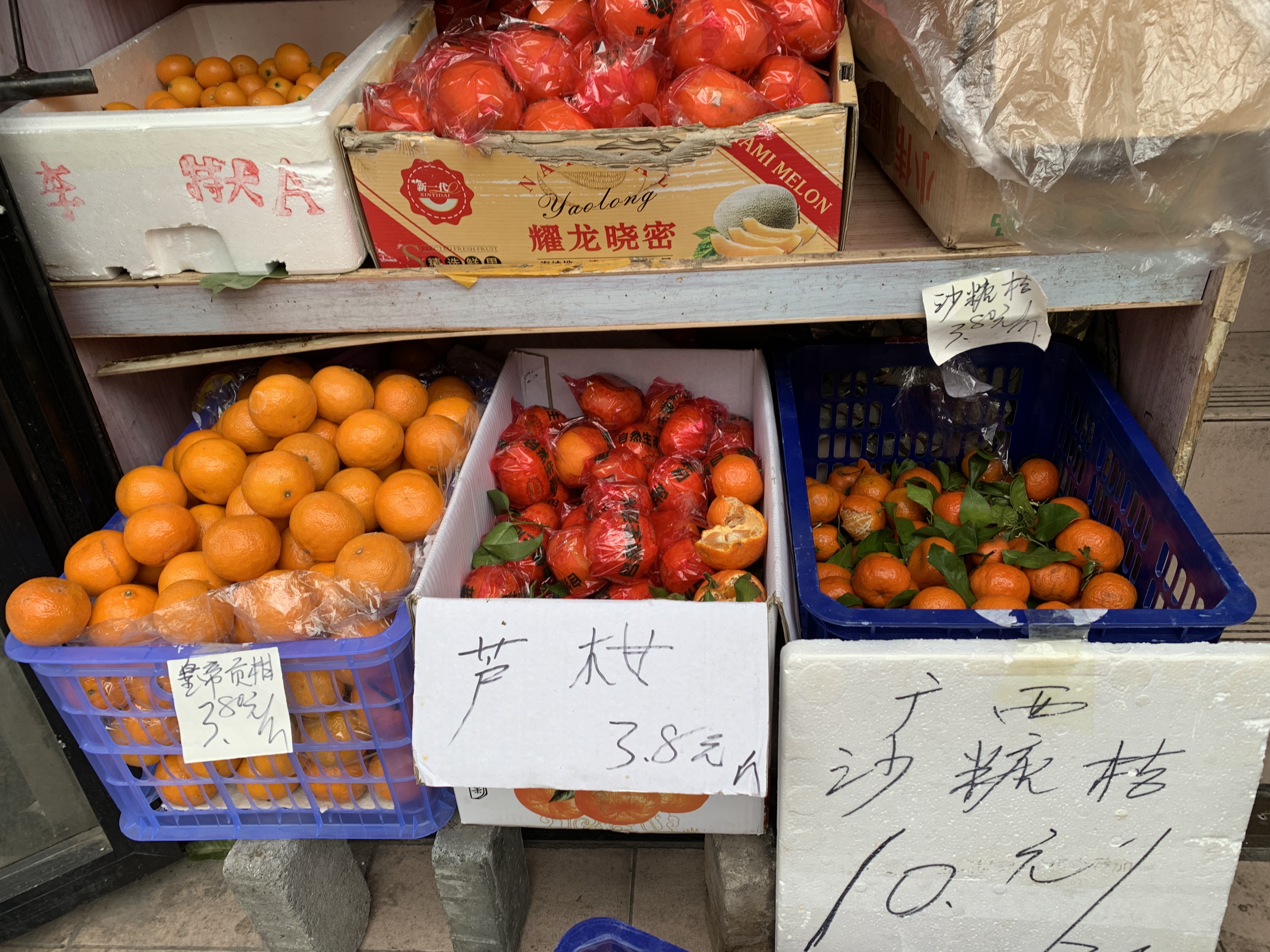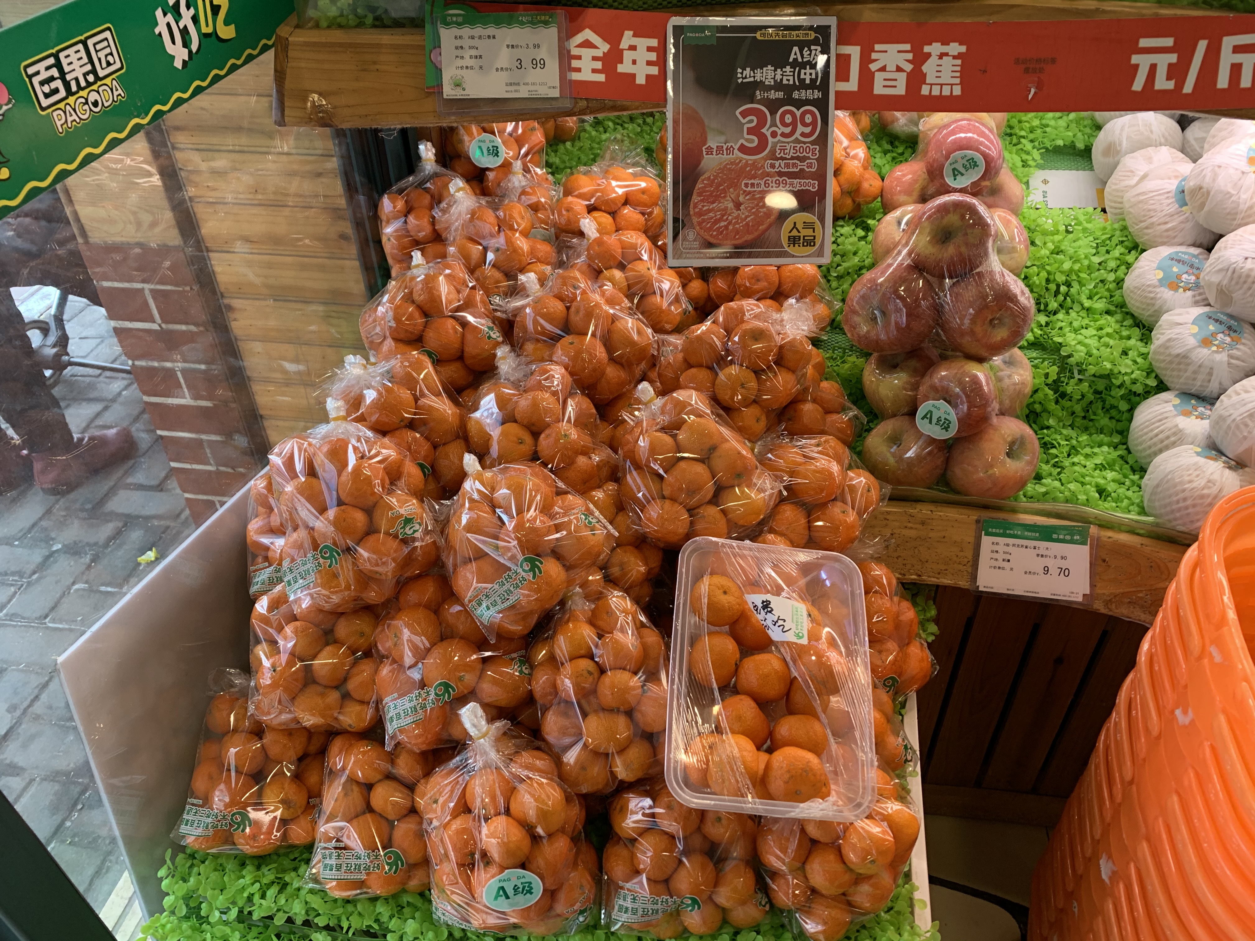 砂糖桔水分足、个头小,而且皮薄易剥,吃起来非常方便。水果店基本都把砂糖桔摆放在近门口的位置上,而且都有相应的促销活动。工作人员表示,砂糖桔既适合自己吃,也适合招待朋友,最近来买的市民非常多。目前砂糖桔零售均价为3-4元/斤。