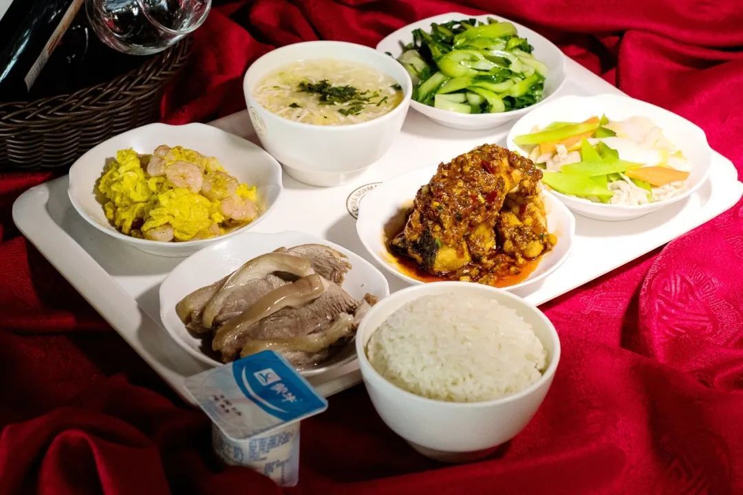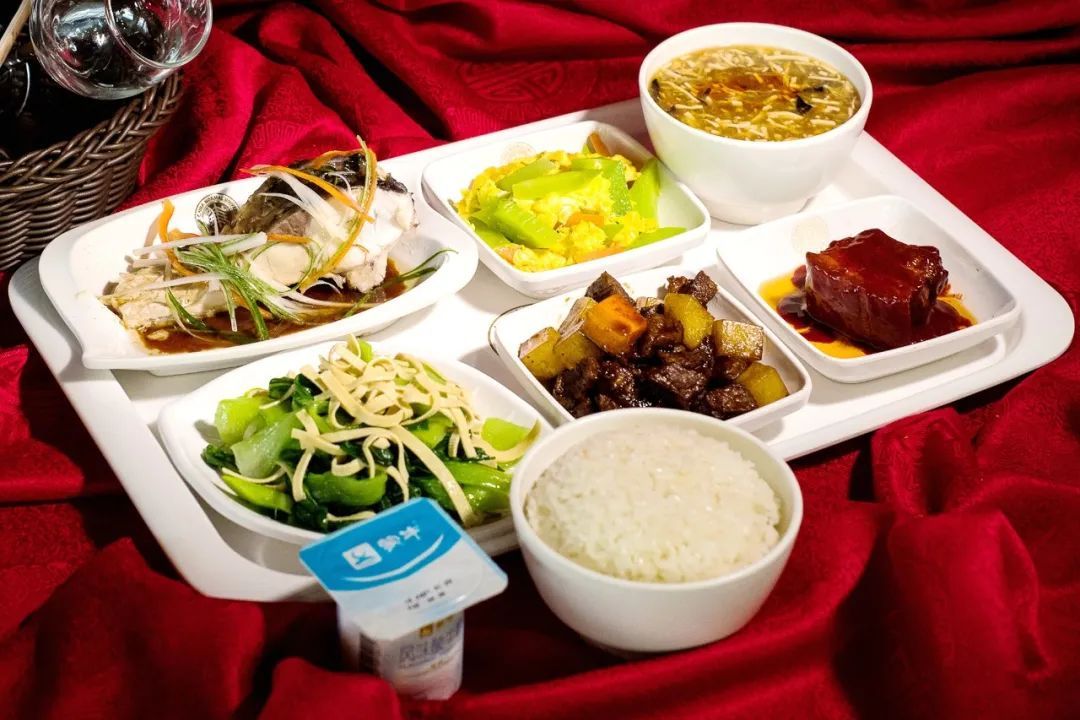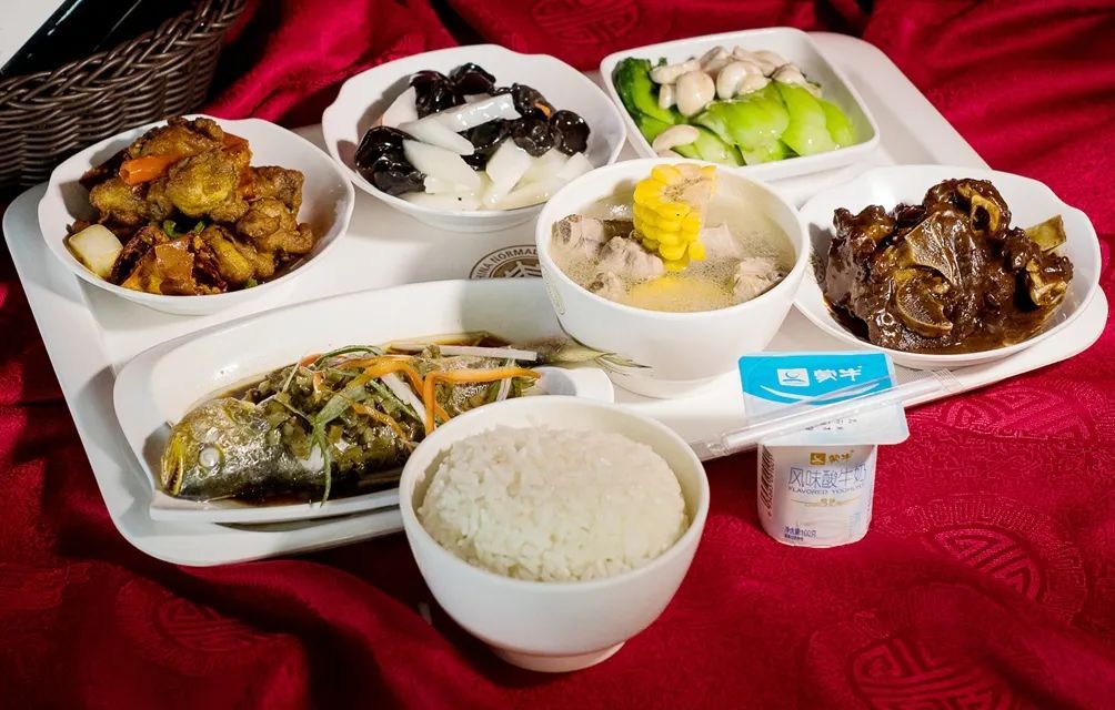 土豆炖牛肉 南乳焖大肉 清蒸青鱼块 莴笋炒鸡蛋 青菜百叶丝 川味酸辣汤 米饭 酸奶一杯