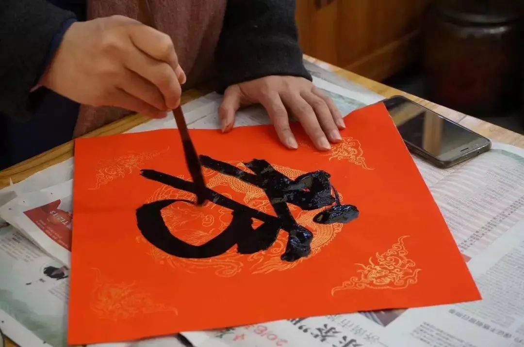新年要有新运势,福字福运带回家。游客可以免费领取现场书写的福字带回家。