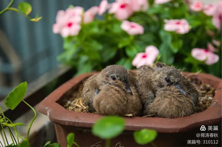 一早,在大斑鸠的引诱下,小斑鸠们双双飞离鸟巢。