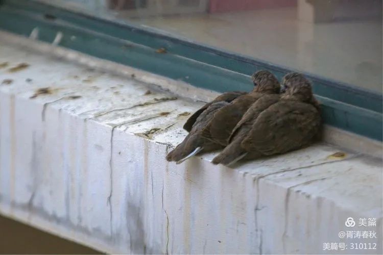 中间小斑鸠似也有动心,做起规定动作伸腿、展翅,可刚站到边缘上又缩了回去。最后小斑鸠似铁了心,再也不肯玩飞翔了,在邻居的窗台下留下了10几泡污秽物,原地趴下,一天就这样过去了。