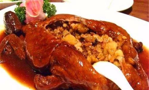 八宝鸭是上海的一道名菜,把冬笋、香菇、鸡肉等等配料塞进鸭子里,然后包上锡纸蒸熟。整道菜就像个小聚宝盆,新年的好彩头都在里面啦!
