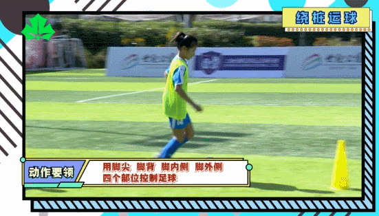 合理运用脚尖、脚背、脚内侧、脚外侧四个部位控制足球,使足球可以按照自己意想的路线行走。过程中要注意跑动的速度与带球距离的统一性。