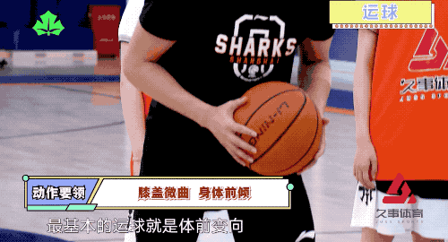 运球时要注意膝盖微曲,身体前倾,重心要低。