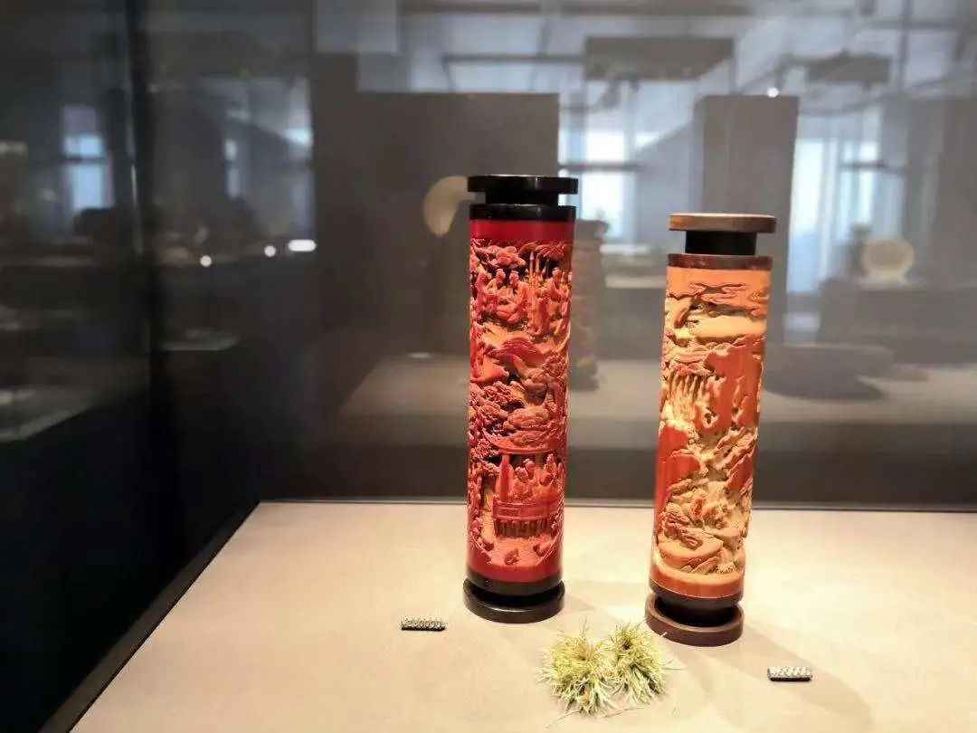 中国的雕刻工艺能雕最昂贵的玉,也能雕最平凡的竹。馆内的竹雕作品来自国家级非遗徽州竹雕。以徽州盛产的毛竹为原料,以刀代笔,因材施艺,雕出各种书画,赋予最常见的竹以艺术生命力。